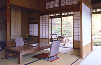大正期、ある実業家が自分の別荘にとこの地を選び土地を造成し、池泉庭園と建物を造りました。庭園の石や木、池や堀の規模を見ても、随分と心血を注いだことが見てとれます。建物は未だに狂いもなく、施主の意気込みが生半可でなかったことが伺えます。