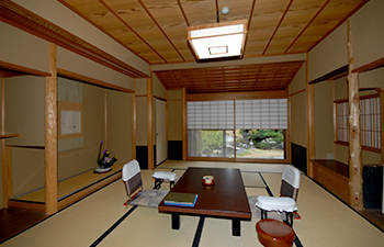 南東に向いた明るいお部屋で、池泉庭園に面し、露地の一部を覗うことができます。