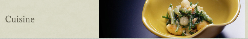 As much as possible we serve local cuisine of Yamaguchi Prefecture featuring fresh and safe seasonal ingredients. Yamaguchi Prefecture is surrounded by two seas, the Sea of Japan (Nihon Kai) and the Inland Sea (Seto Nai Kai), so it is blessed with an abundance of seafood. Especially puffer fish (fugu) in winter and pike eel (hamo) in summer are rare specialties. In addition, there are edible wild plants and a variety of cultivated vegetables such as the splendid Ato Tokusa rice grown at high altitude, the Shimonoseki Yasuoka green onions and burdock of Mito Akagou.