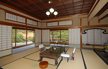 Built in the 1920’a (Taisho Era). These bright rooms facing the southeast, facing the pond garden also provide a glimpse of the tea garden.