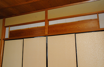 Beside the large 10-mat tatami room is nestled a small study. There is a stylishly carved transom made of maple between the rooms.